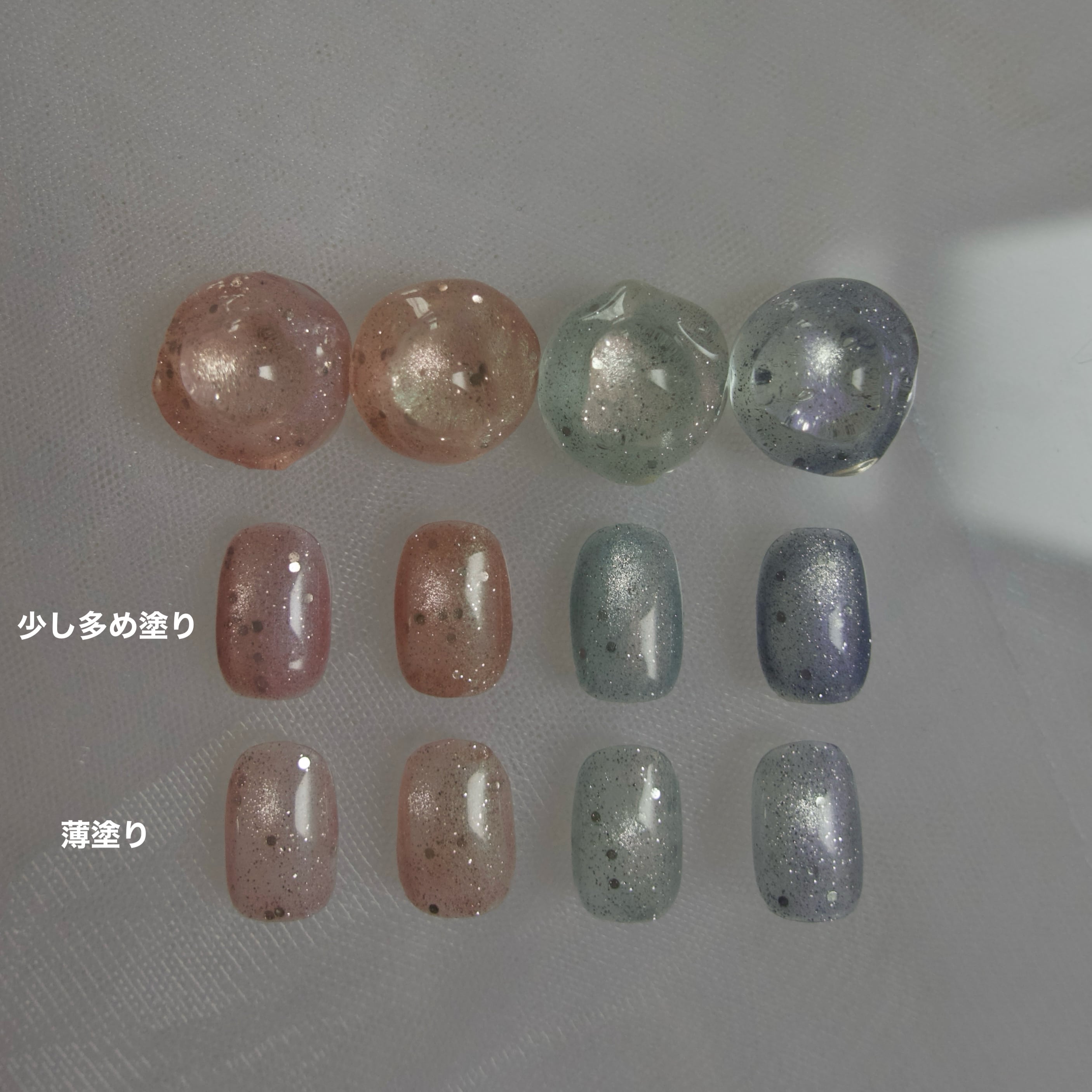 ジェルを多めに取って塗る、少なめに取って塗る